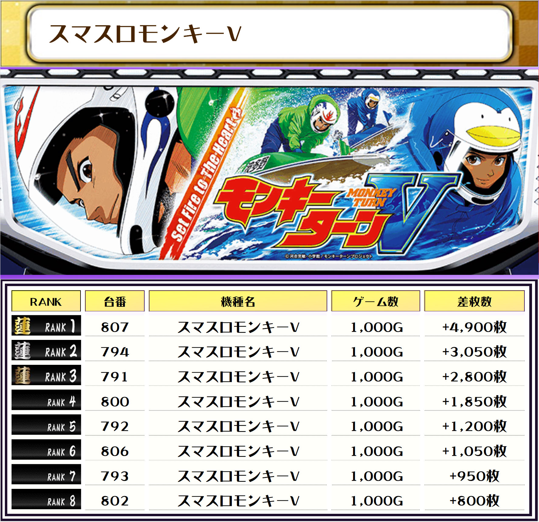 スマスロ北斗の拳、スマスロモンキーV、カバネリが数多くランクインを果たし、ホール全体を盛り上げていましたねぇ~💥💥💥💥💥