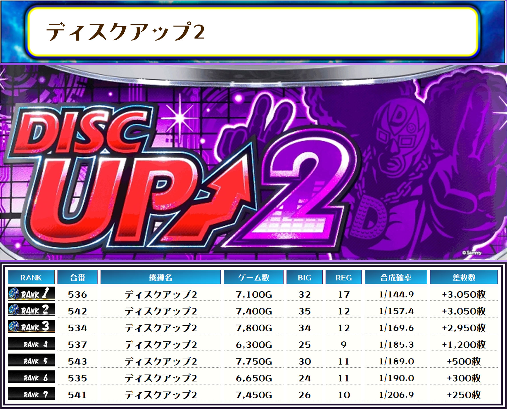 あと、同店で人気のディスクアップ2は今回も稼働が絶好調で、結果も伴っていましたよっ