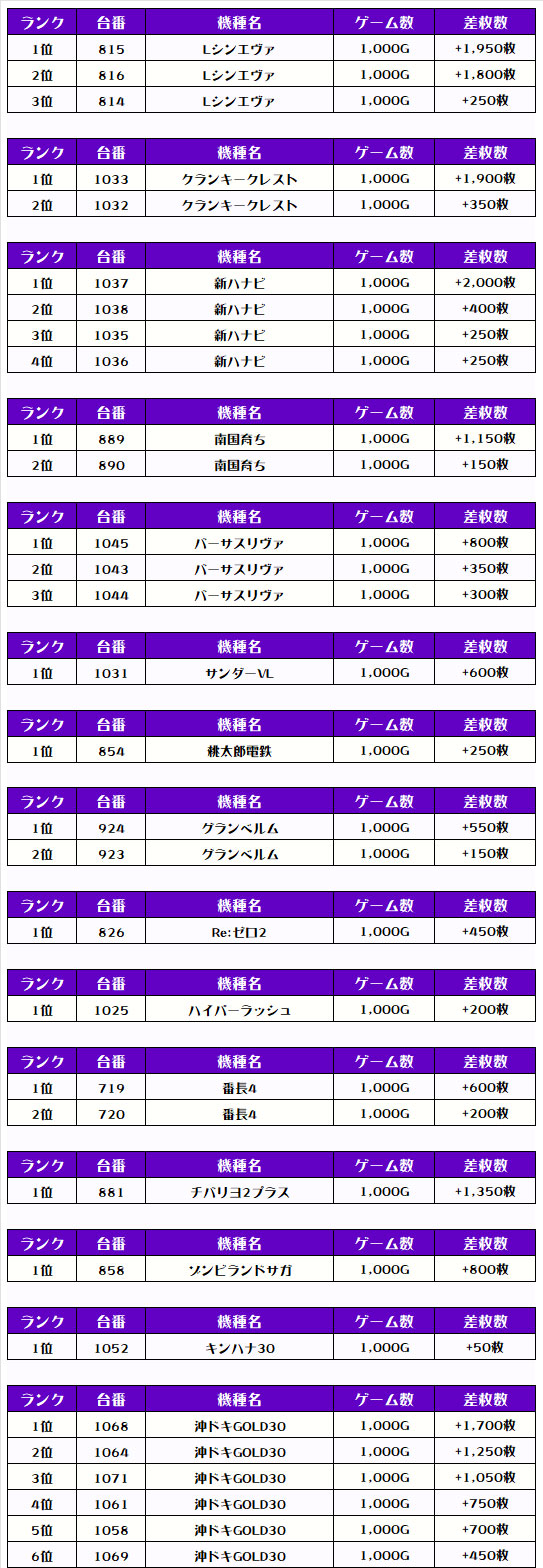 ということで、この日の店舗全体差枚数ランキングがこちら❗️