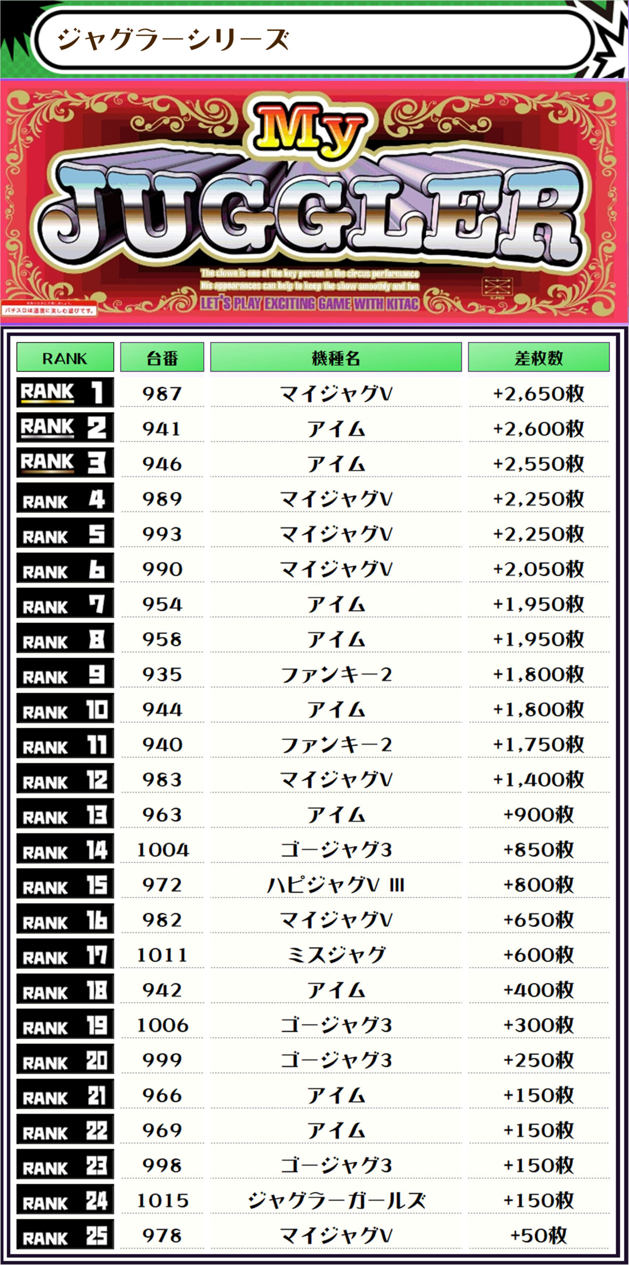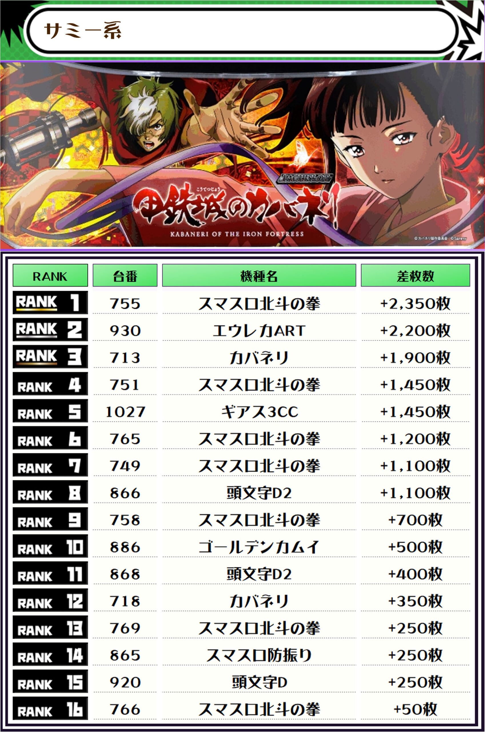 この取材では複数台設置の全機種および全体差枚トップ20をランキング形式でお伝えします❗️