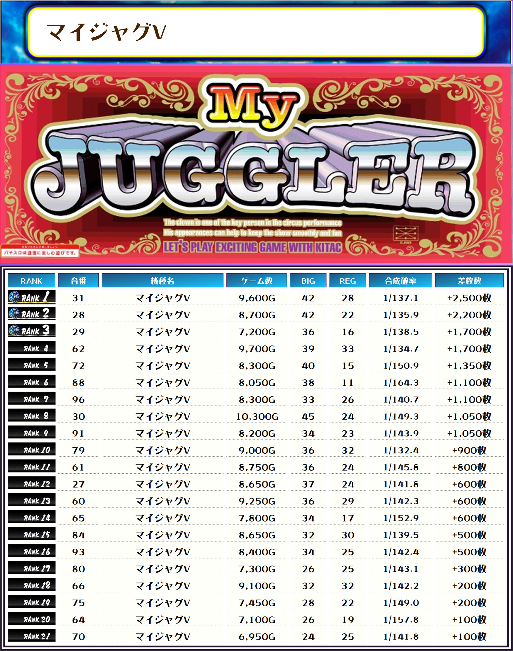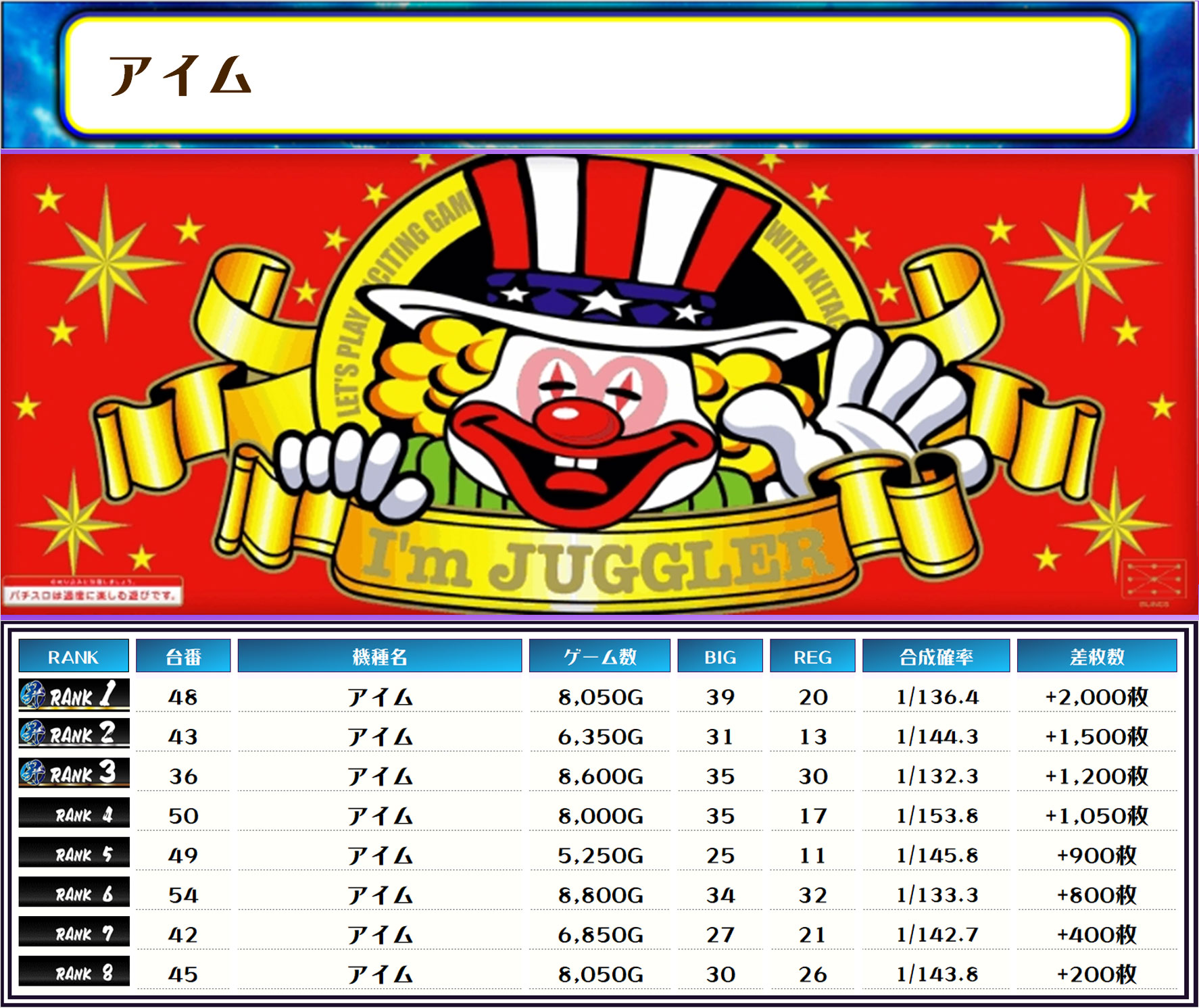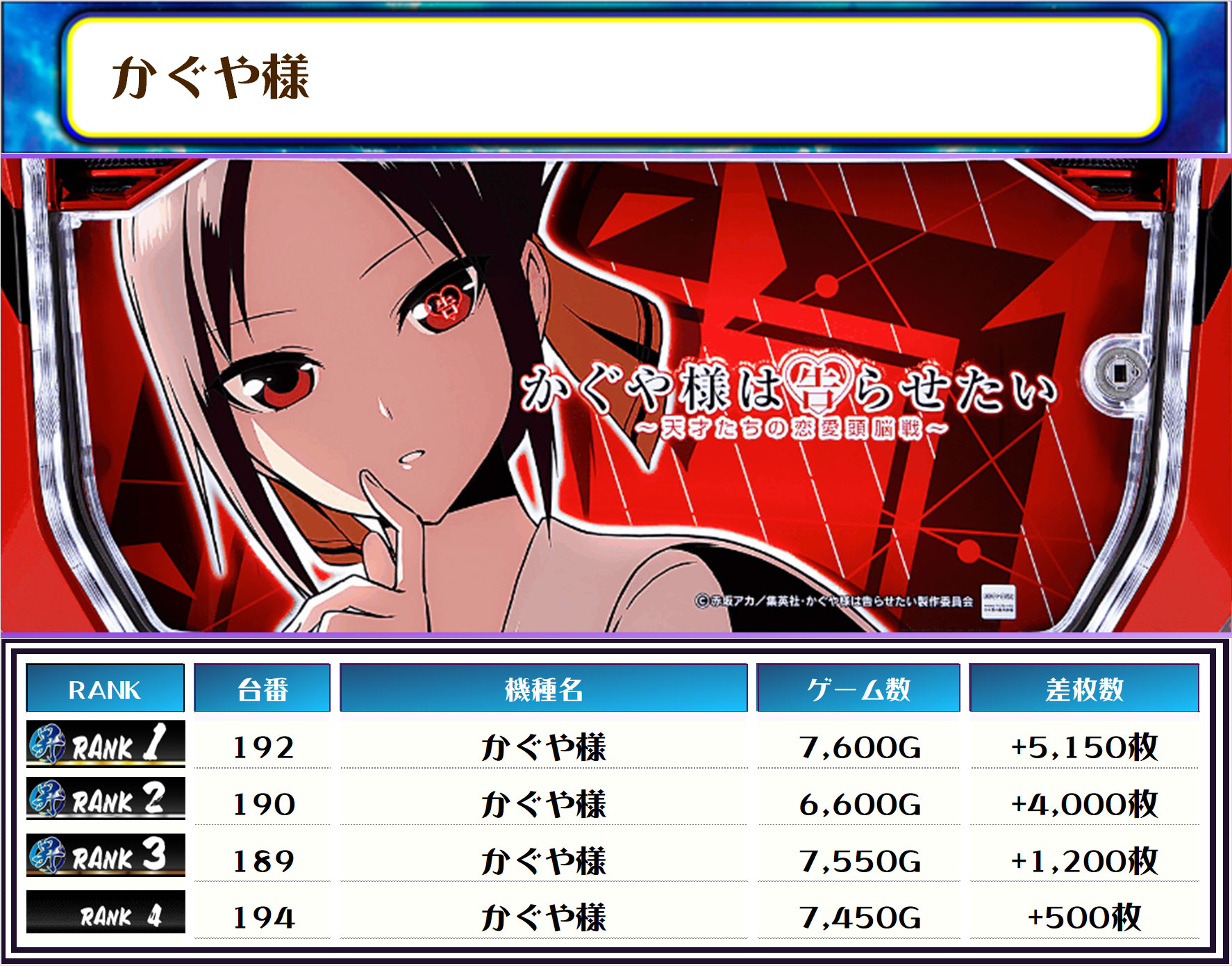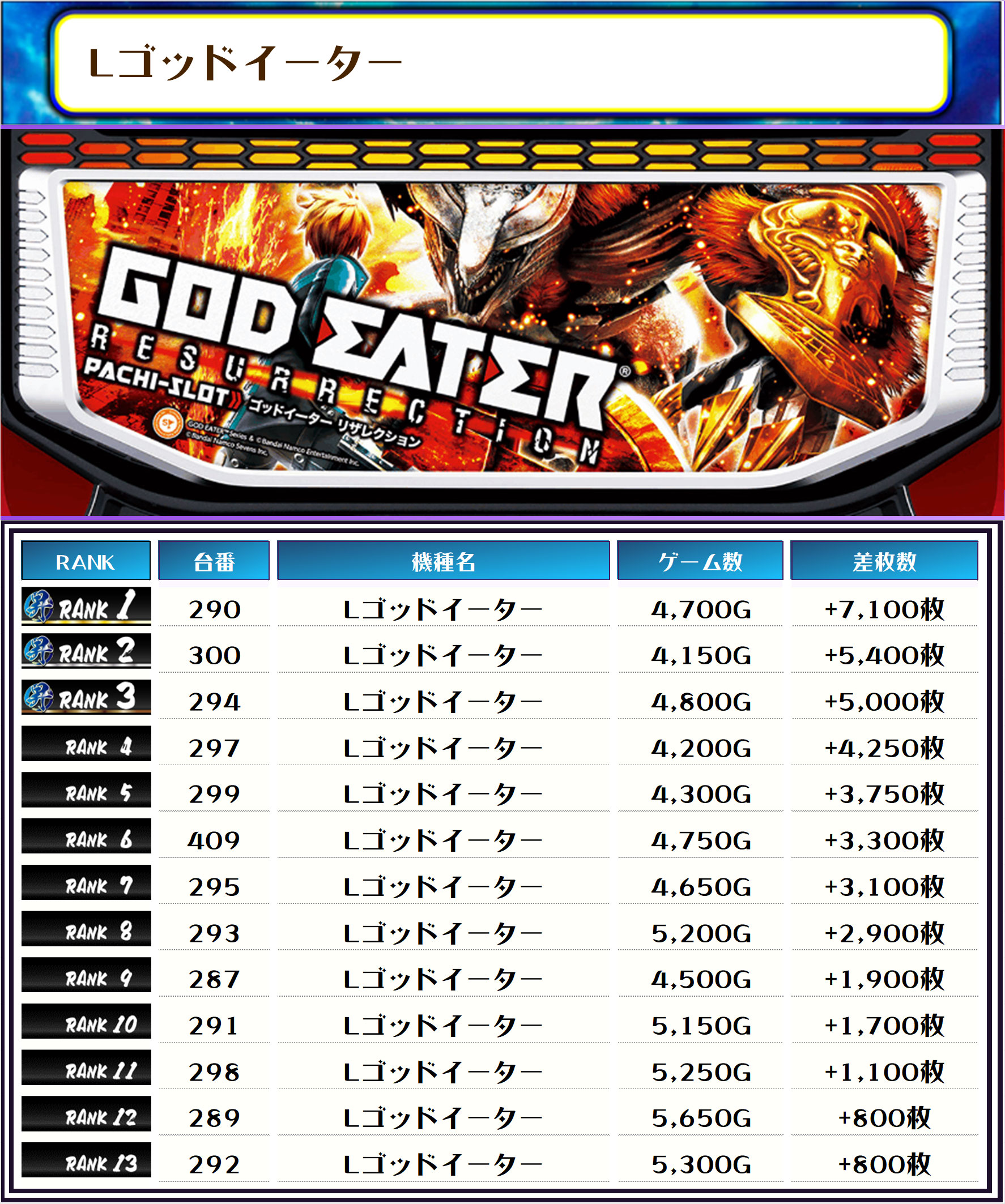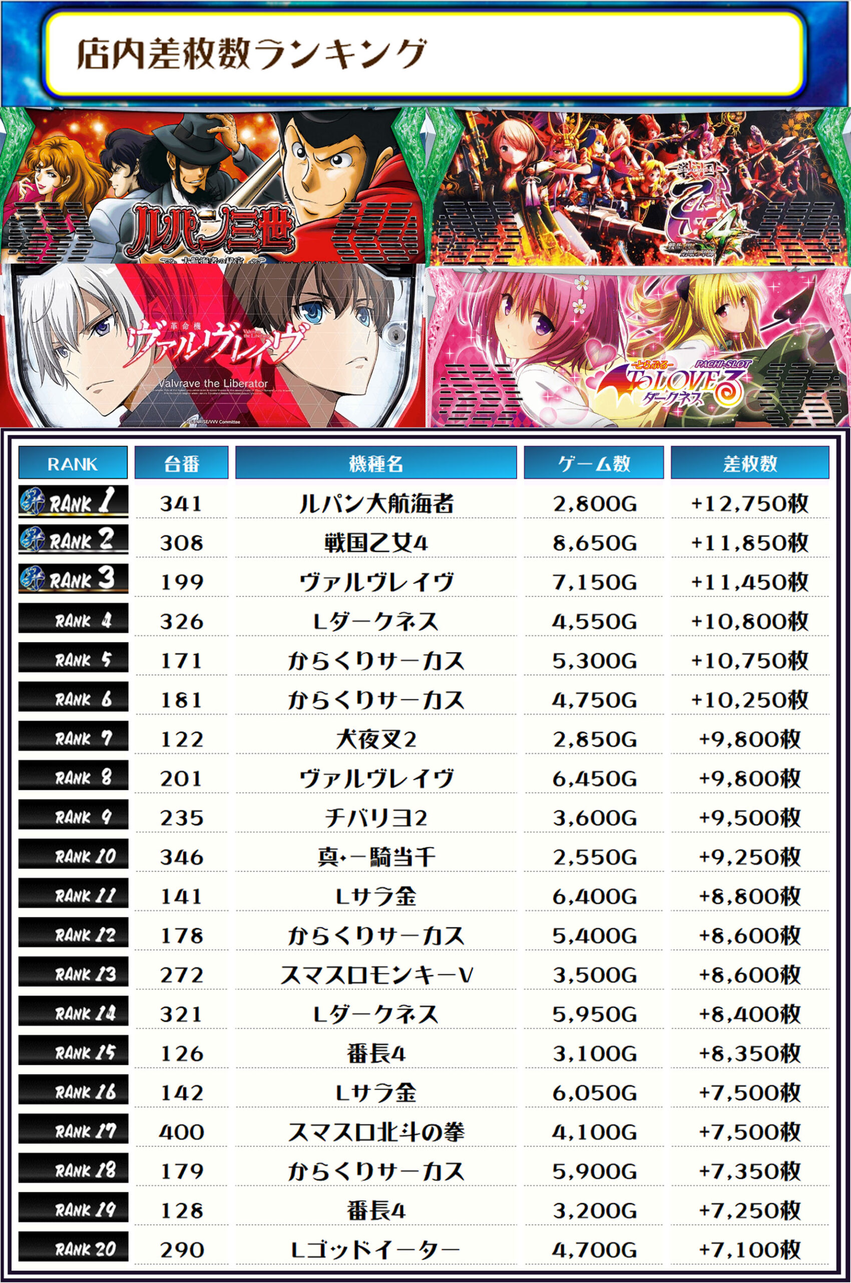 それでは【店内差枚数ランキング】をチェックしましょう❗️