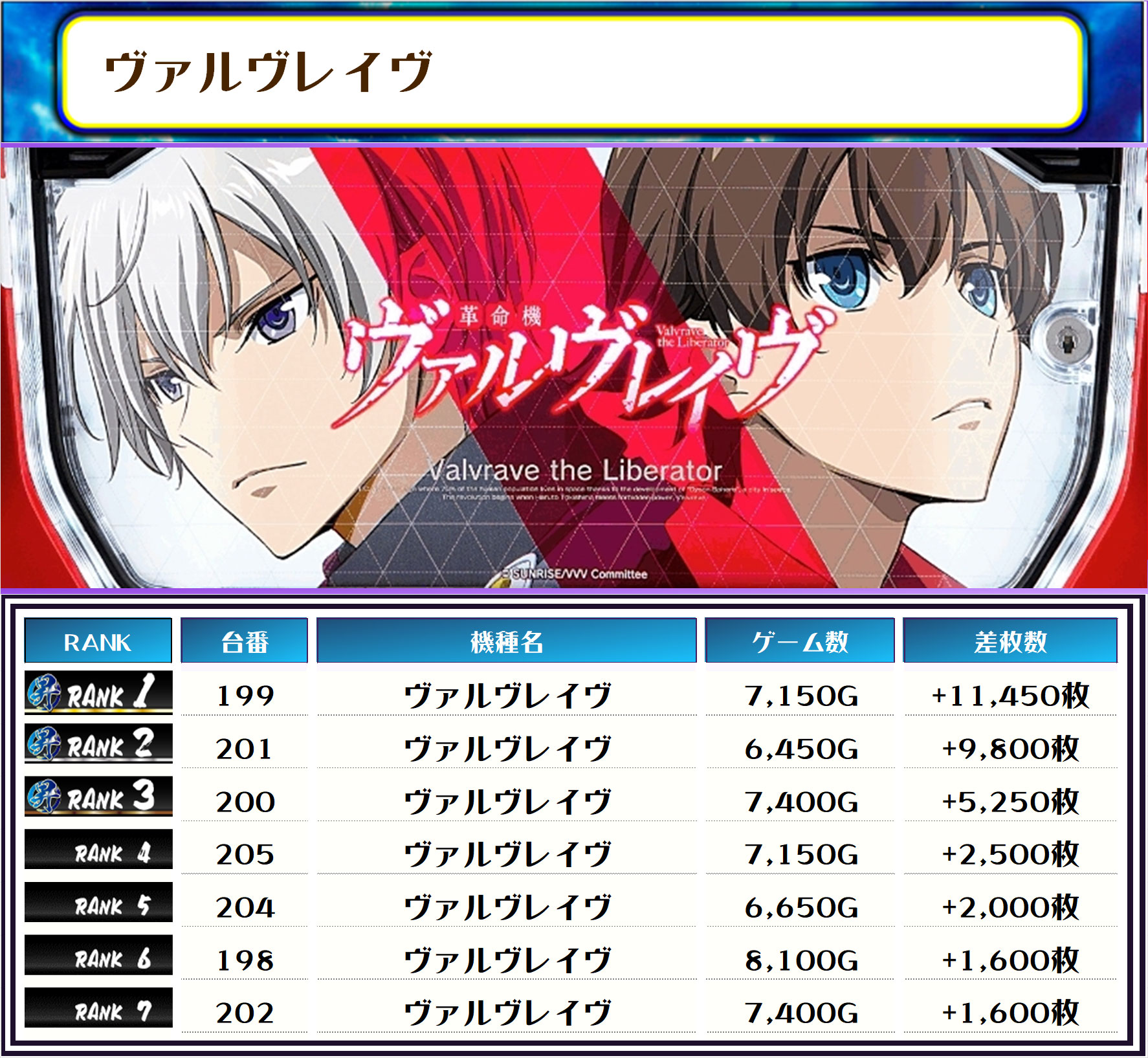 2位には【戦国乙女4・308番台】の+11,850枚、3位には【ヴァルヴレイヴ・199番台】の+11,450枚がランクインっ🏆🏆🏆🏆