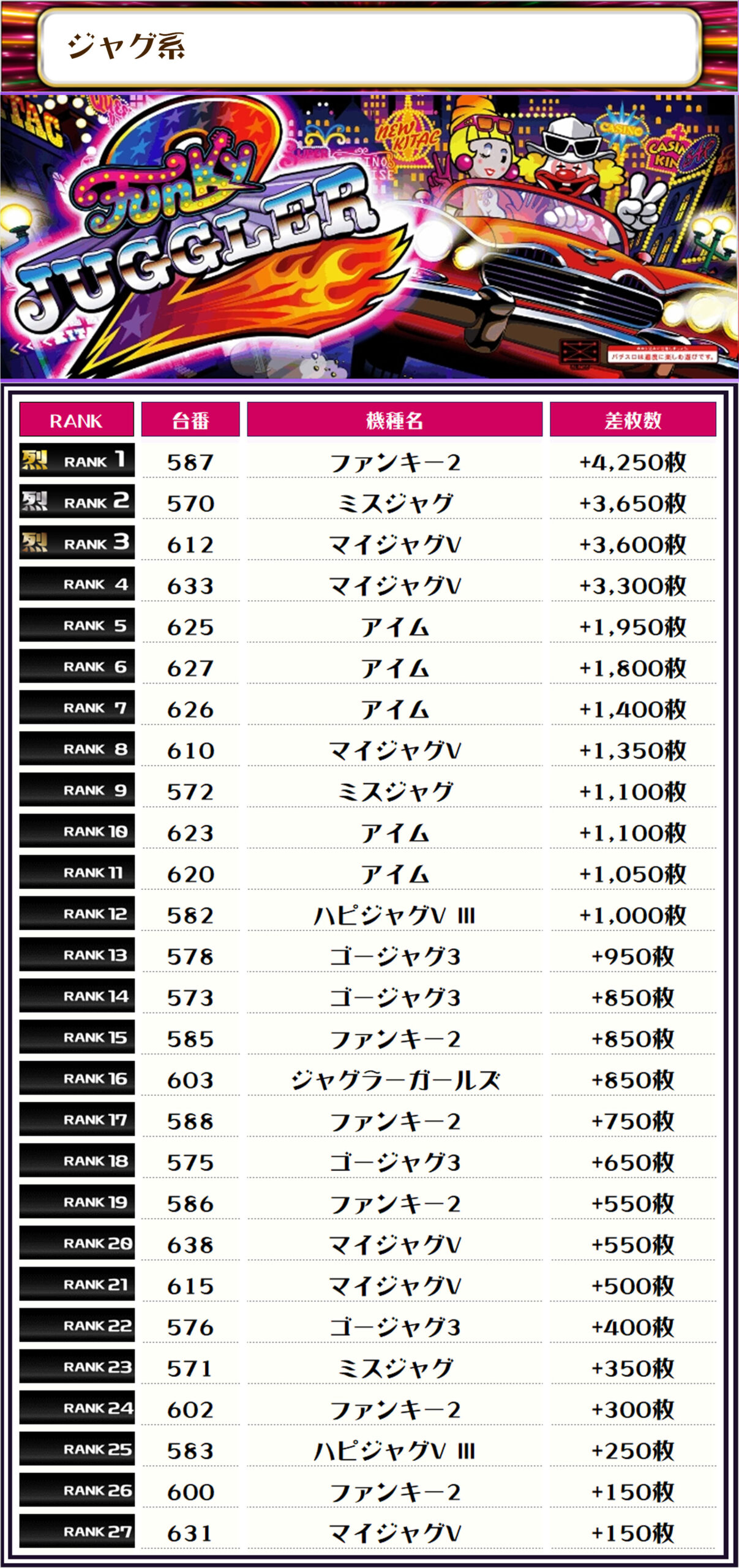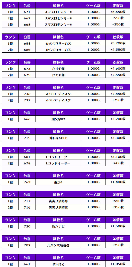 それでは【機種別差枚ランキング】を見ていきましょう❣️❣️