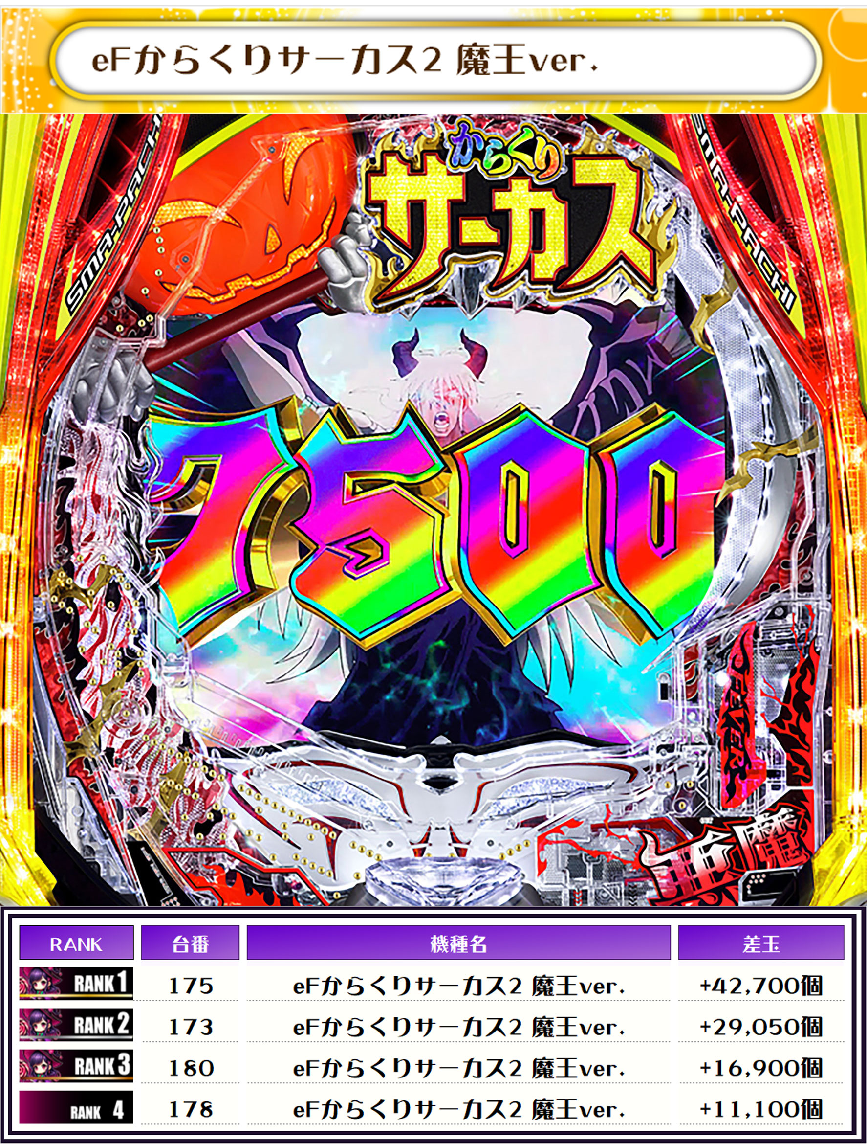 TOPは【eFからくりサーカス2 魔王ver.・175番台】が+42,700発を記録❗️