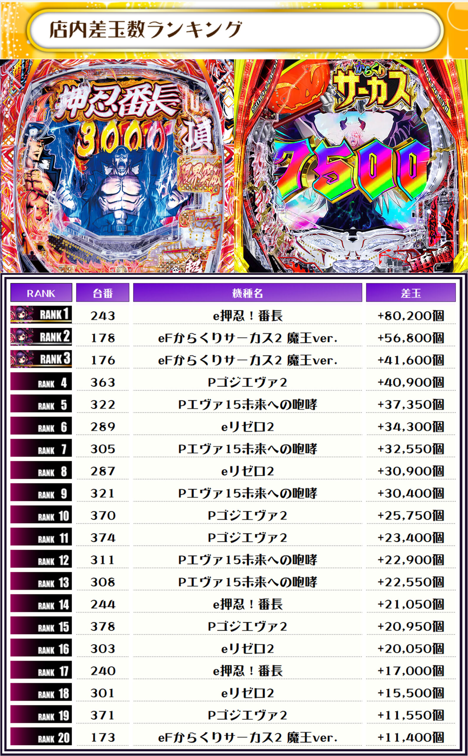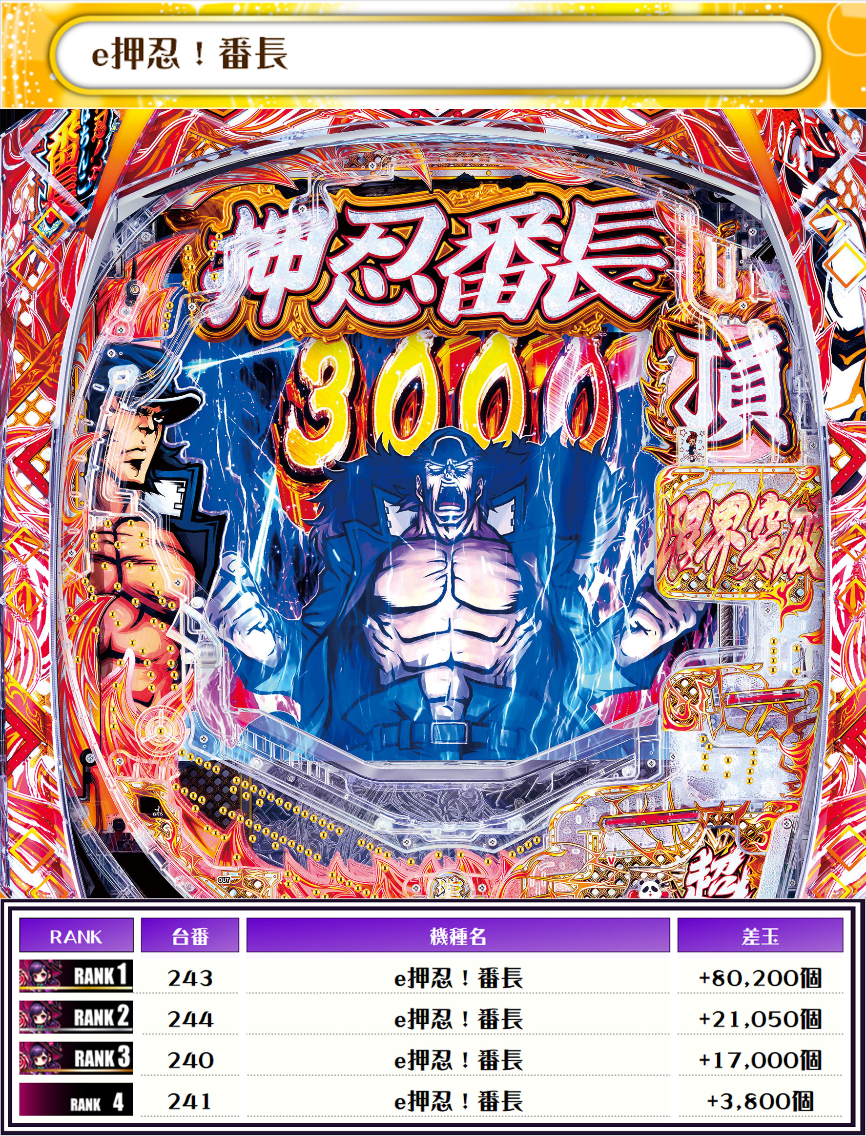 TOPは【e押忍!番長・243番台】が+80,200発を記録❗️