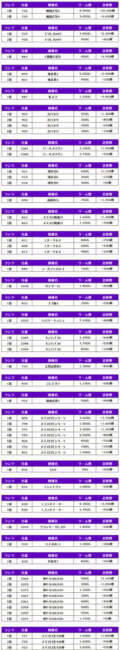 全体差枚トップに輝いたのは【戦国乙女4・736番台】の+10,200枚っ💫