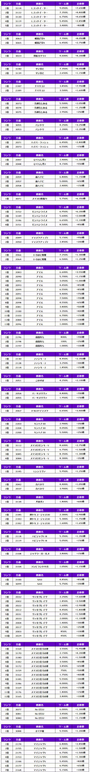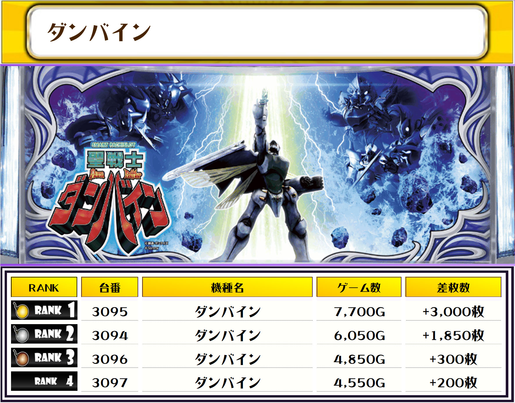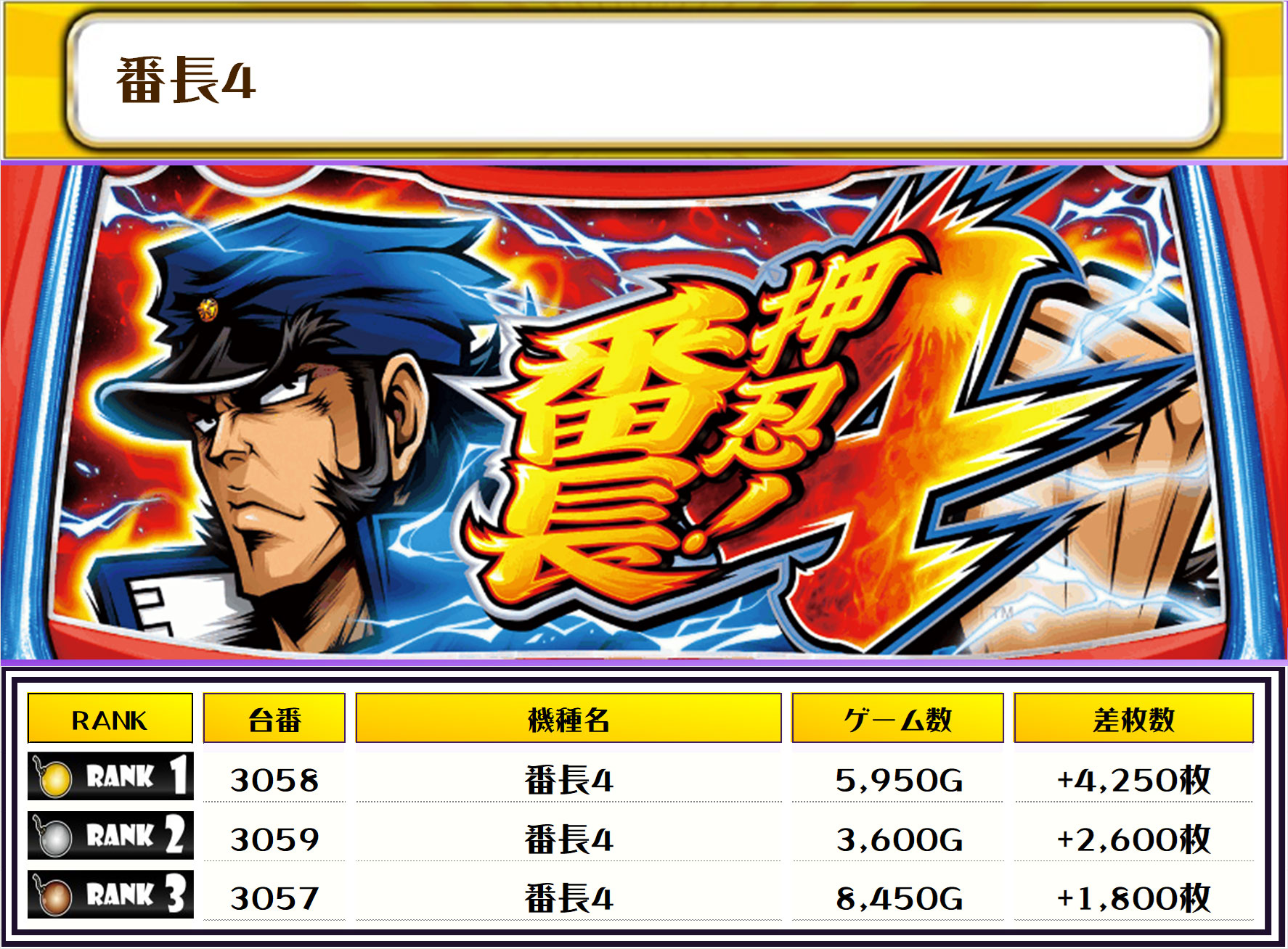 2位には【戦国乙女4・3063番台】の+8,050枚が、3位には同率で【ダン持て・3140番台】の+8,050枚がランクインしたぞい🥳