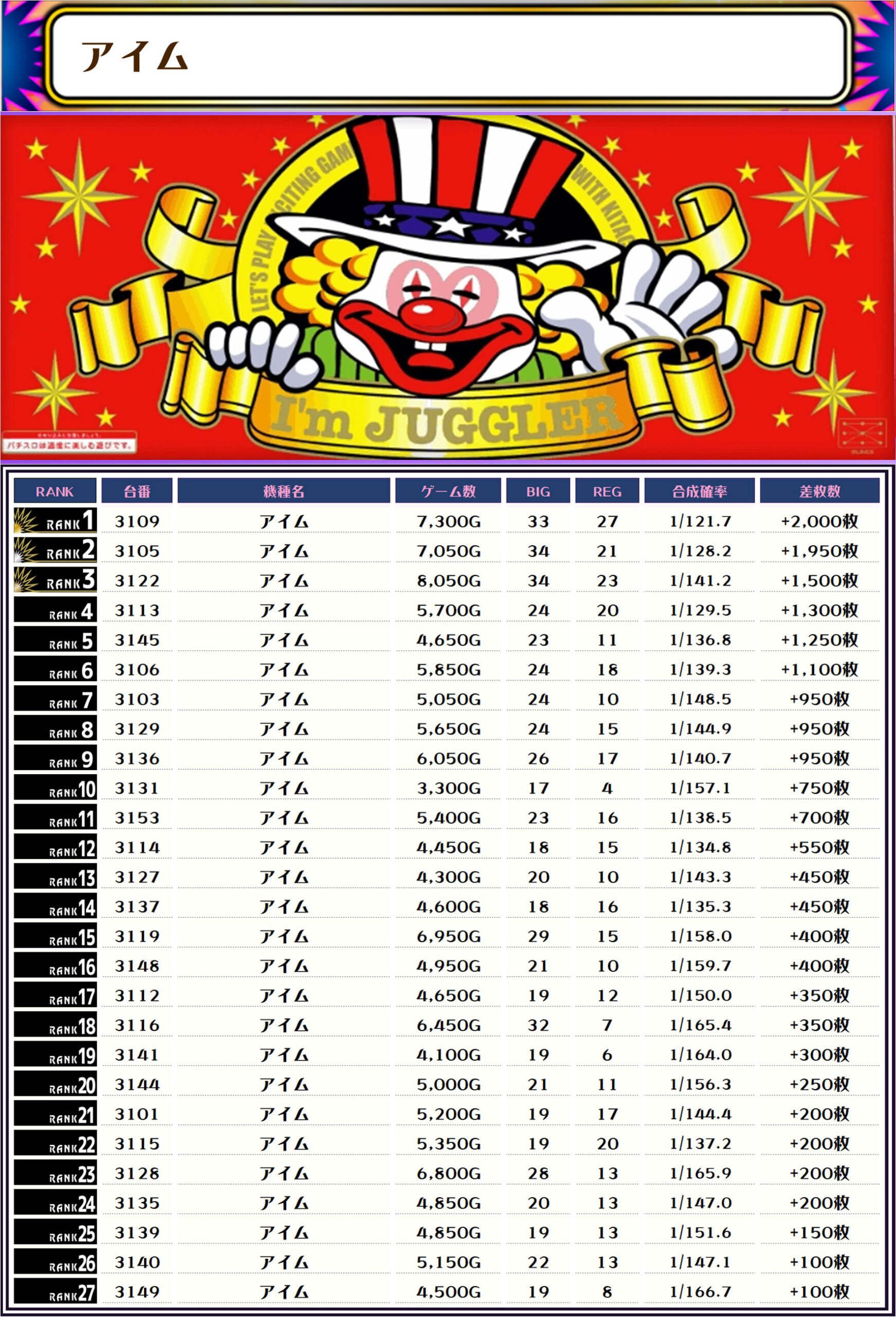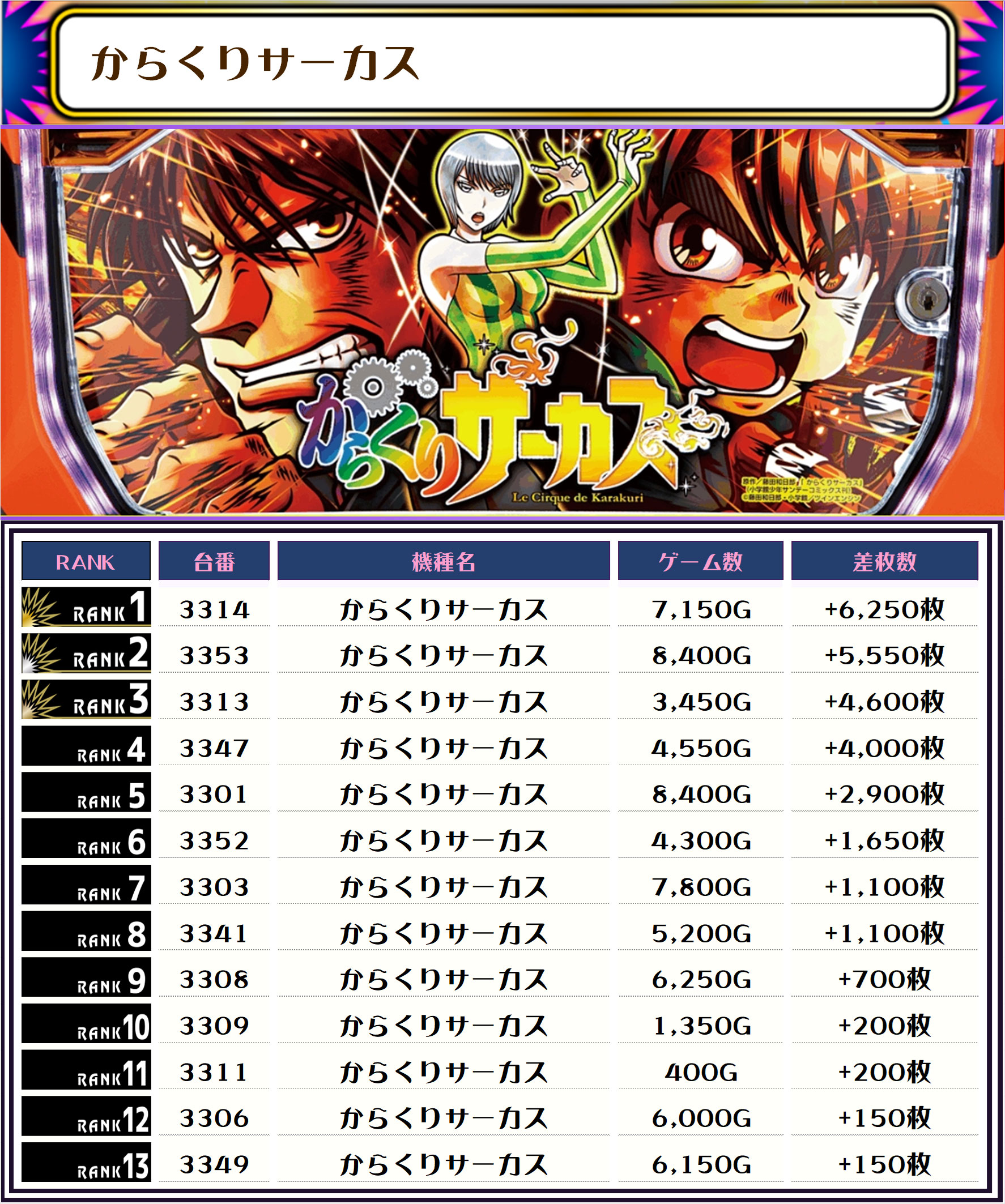 この取材では複数台設置の全機種および全体差枚トップ20をランキング形式でお伝えしていきます❗️