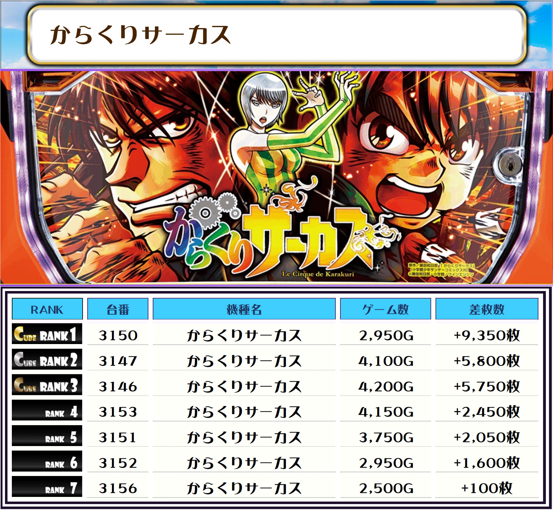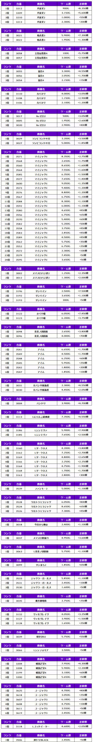 それでは早速、この日の模様を【差枚ランキング形式】で見ていくでやんすよ❗️
