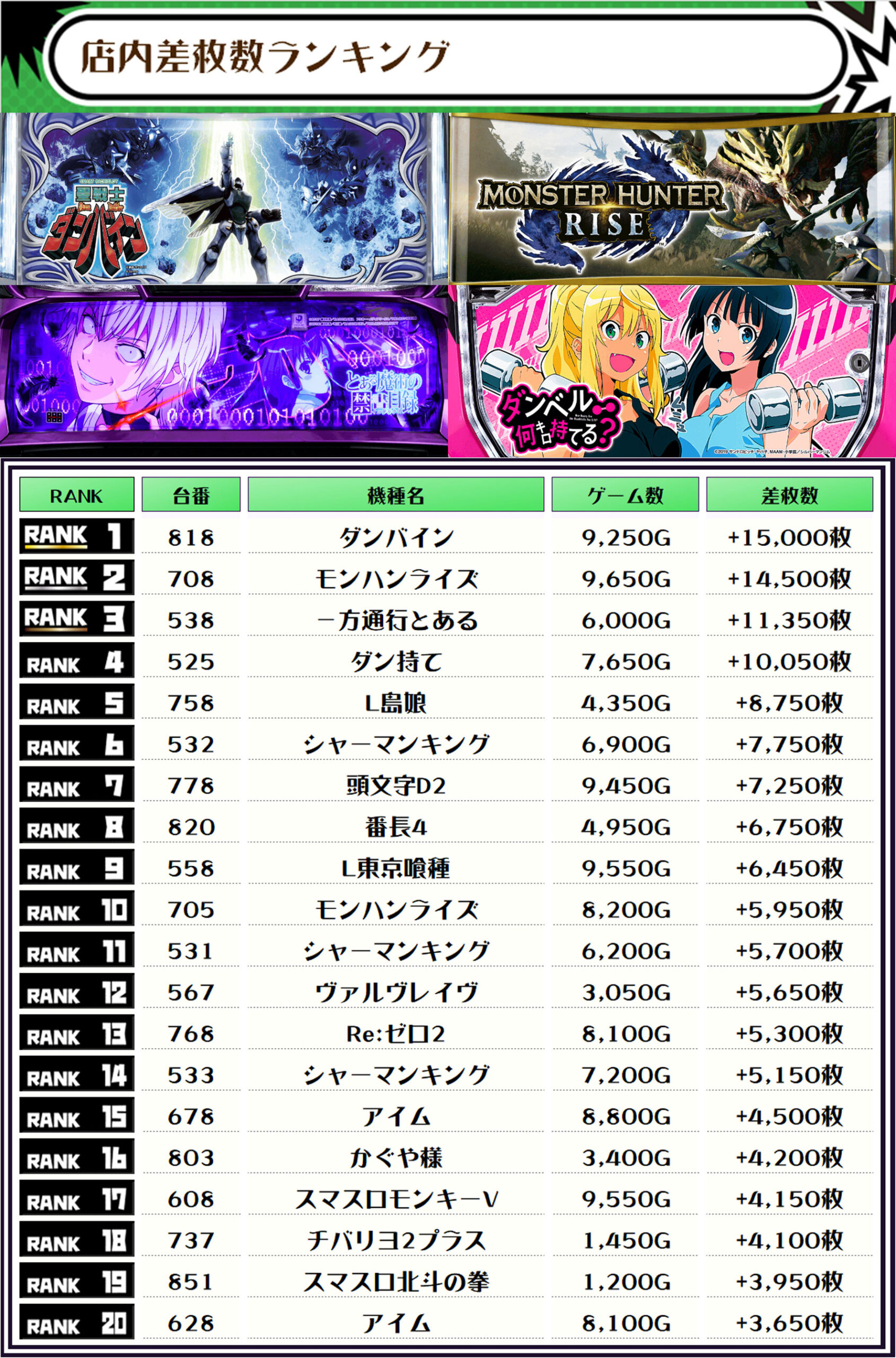 それでは、この日の差枚ランキングを見ていきましょう‼