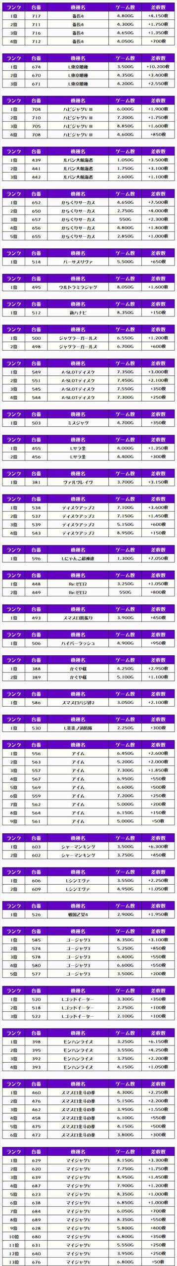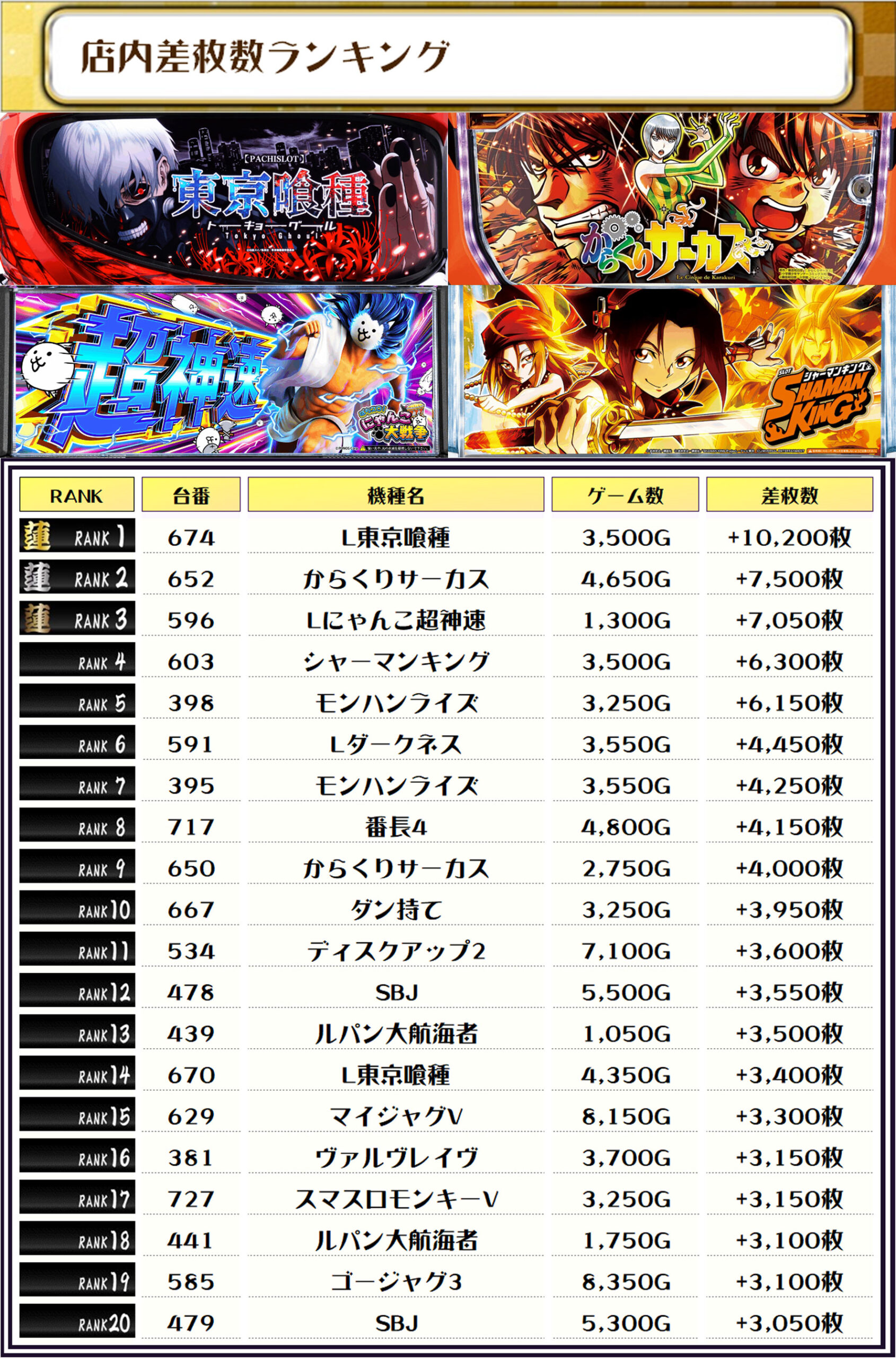 ちなみに、この取材では複数台設置の全機種および全体差枚トップ20をランキング形式でお伝えしていきます‼️