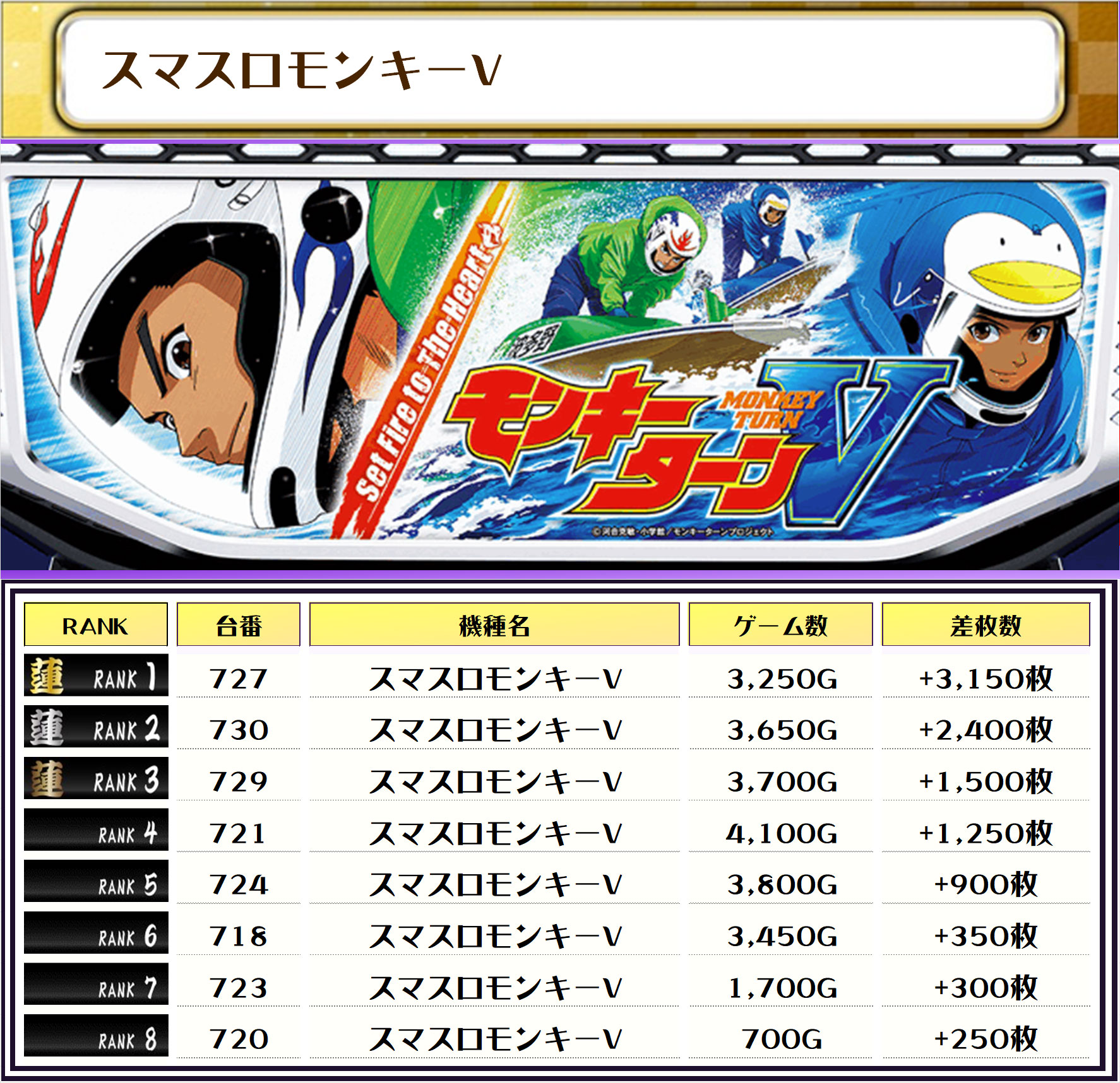 2位には【からくりサーカス・652番台】の+7,500枚、3位には【Lにゃんこ超神速・596番台】の+7,050枚がランクインしましたーっ🎊