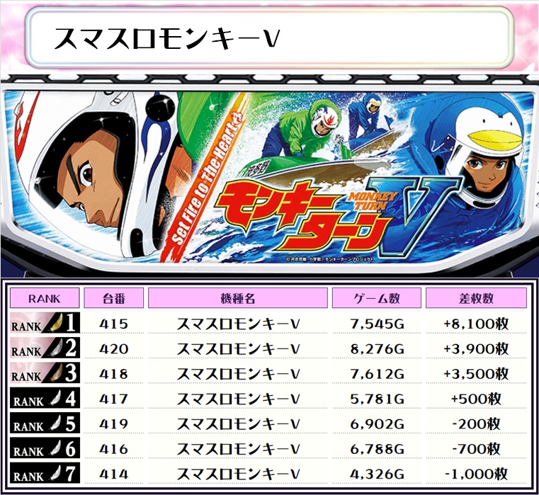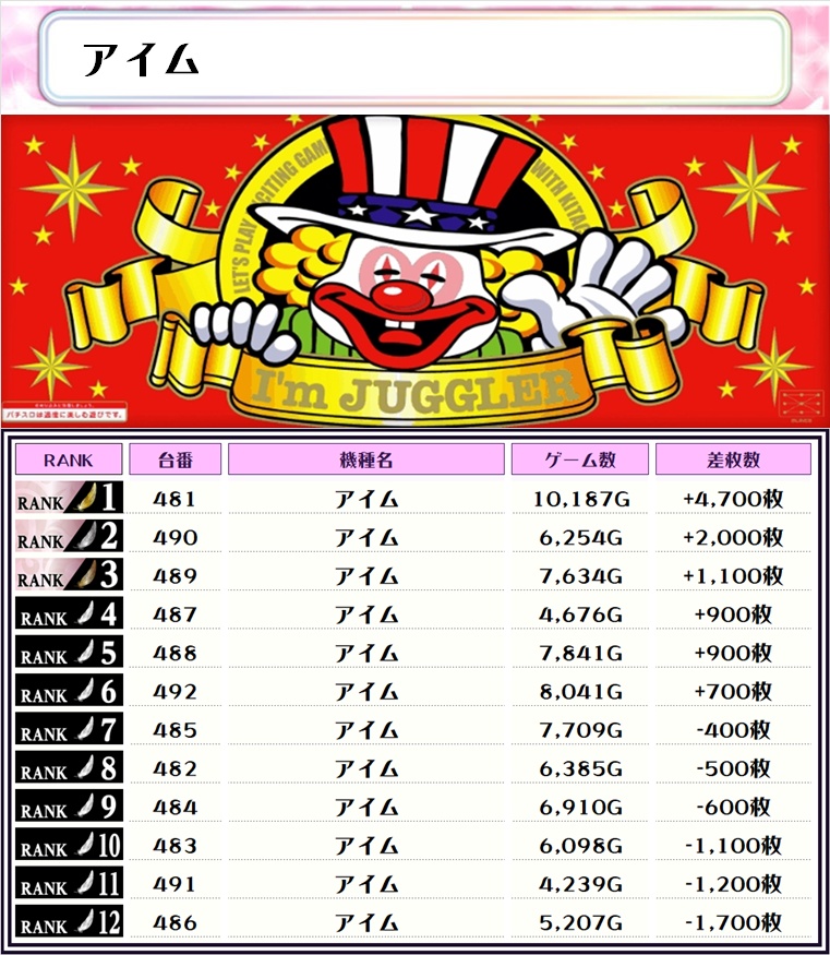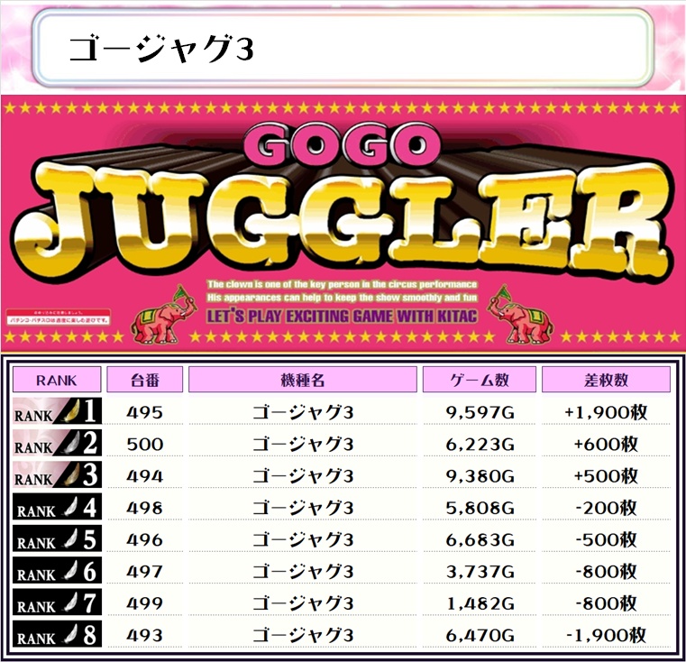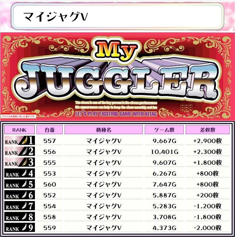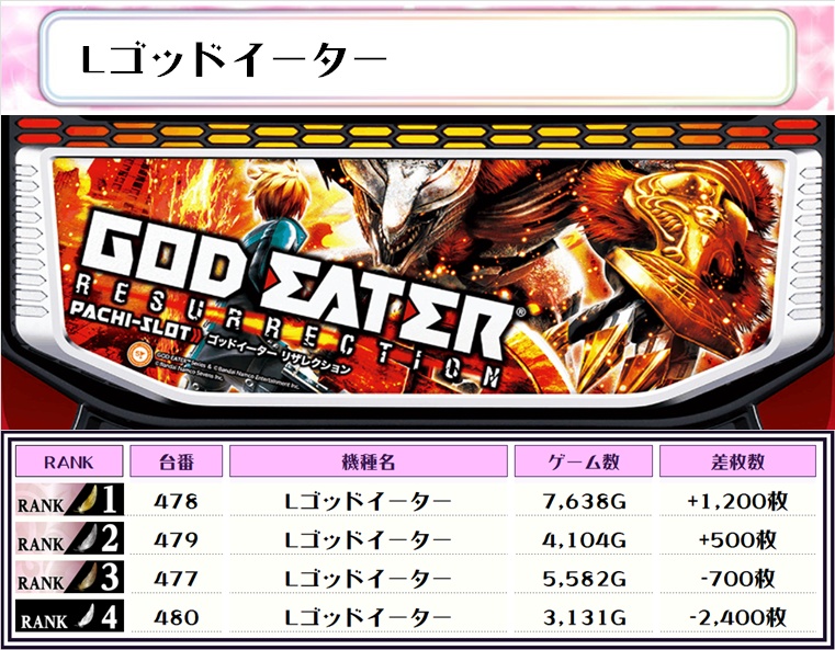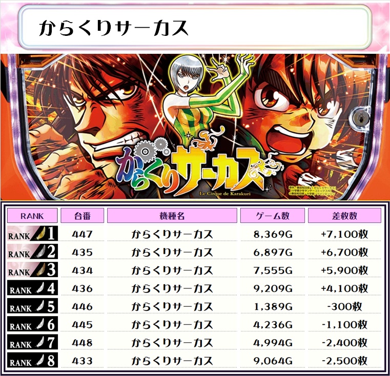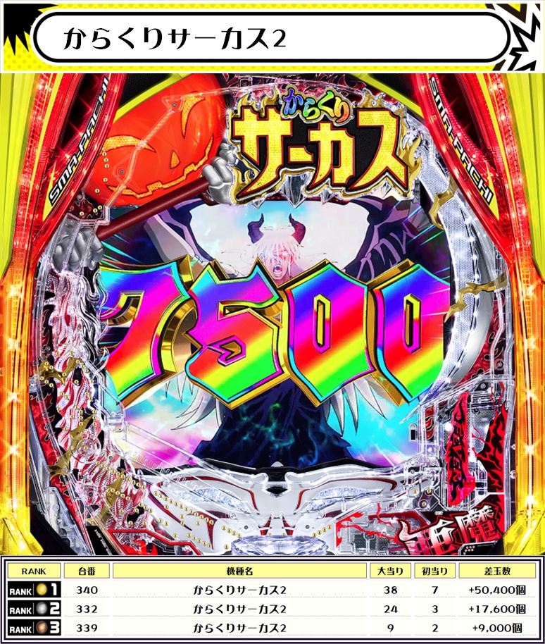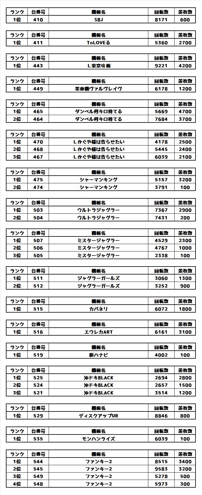 ※この取材では複数台設置の全機種および全体差枚トップ30をランキング形式でお伝えしています。![]()