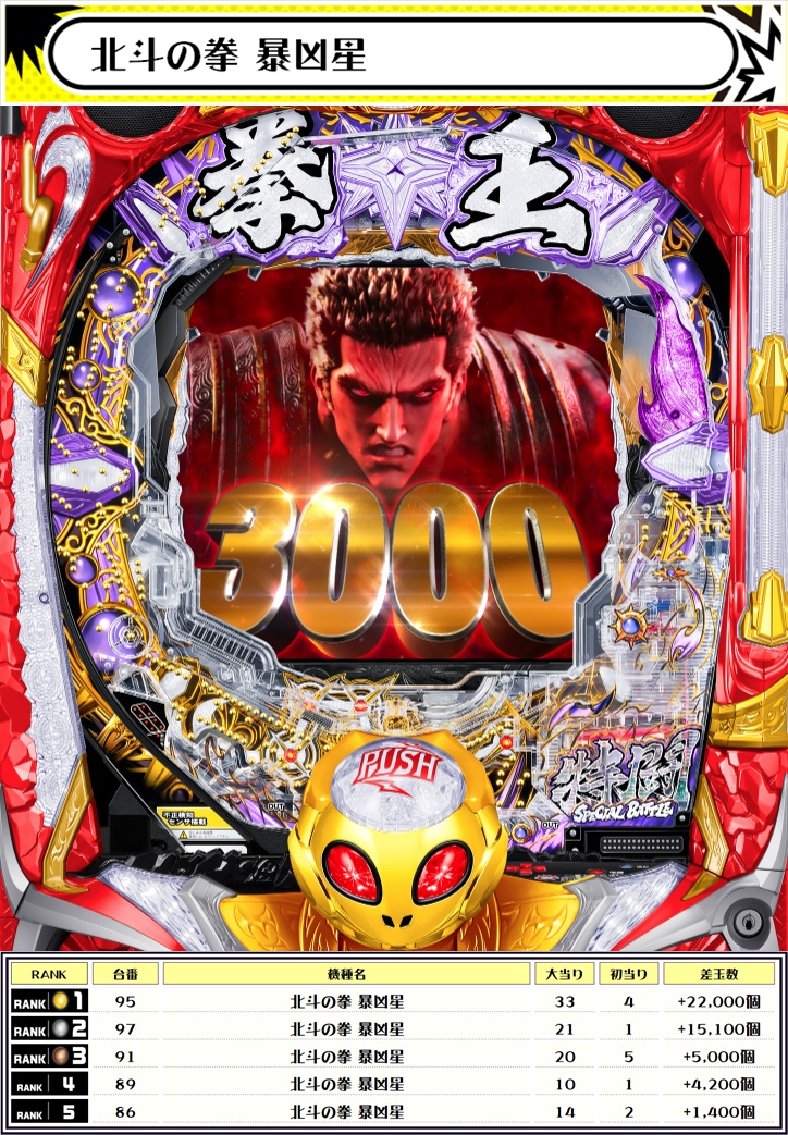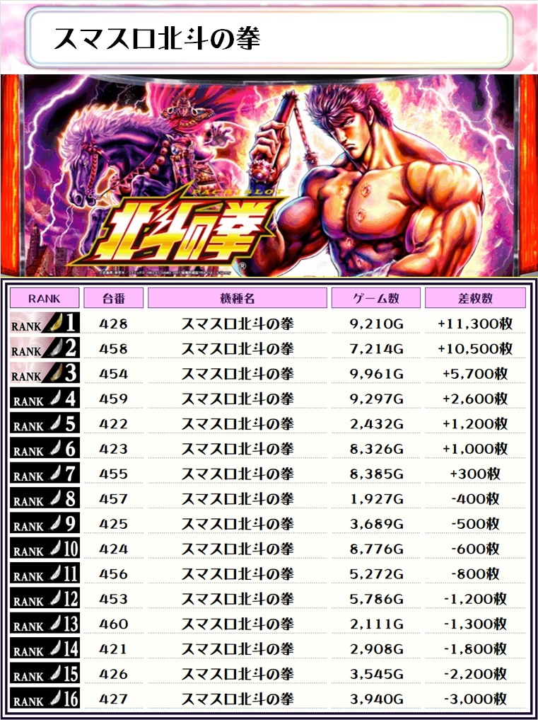 【北斗の拳】からも約半分の台がプラスとなり好調な台が多かった事がわかりますね☆